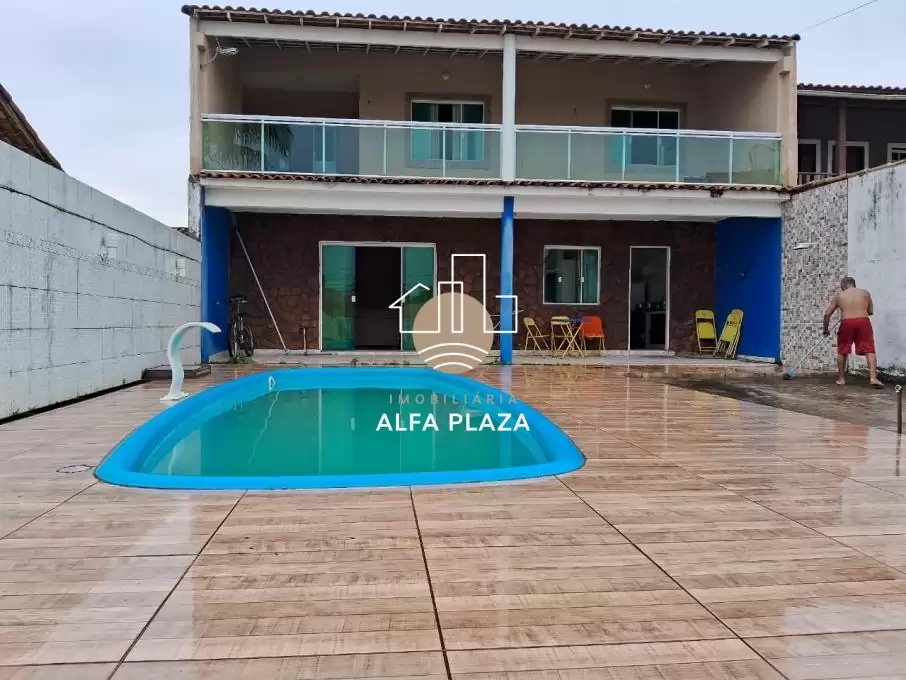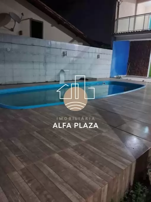 Parte de baixo: sala ampla, cozinha, 1 banheiro, área de serviço coberta, varanda na frente, área gourmet coberta com churrasqueira, forno e fogão a lenha, além de uma ótima piscina.